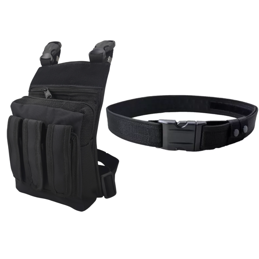 BORNAL COM GRANDE ESPAÇO E REFORÇADO Bornal de Perna com 3 bolsos para carregadores; Contém 1 (um) compartimento grande com fecho éclair (zíper) + 1 (um) compartimento médio com fecho éclair (zíper) e 3 (três) porta carregadores com fecho auto colante em velcron na parte externa. Velcro na parte superior para colocação de tarjeta - medidas 17 cm X 5 cm. 1 alças de perna e 2 alças que se prendem ao cinto com regulagem e fecho TicTac. Bornal em duratran e nylon com costura reforçada. Possui velcro na sua parte superior onde é possível adicionar patchs personalizados e identificações. CARACTERÍSTICAS: Marca: Mega Joww Cor: Preto Material: Duratran Medida total do Bornal: 29 cm Altura x 17 cm Largura x 8 cm Profundidade (espessura); Medida do bolso Maior: 23 cm Altura X 17 cm Largura X 1 cm Profundidade ( espessura); Medida do bolso médio: 18 cm Altura X 17 cm Largura X 8 cm Profundidade (espessura); Medidas dos Porta carregadores: 10 cm Altura Mínima X 4 cm largura X 2 cm Profundidade (espessura). 17 cm Altura Máxima X 4 cm Largura X 2 cm Profundidade (espessura). Produto de alta qualidade e durabilidade.